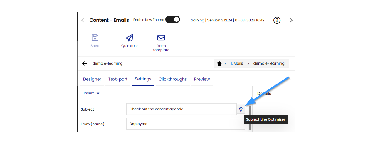 In the email editor, the subject line optimizer has been removed from the subject field in preparation for upcoming AI functionality that will provide more options for generating and optimizing subject lines and other text properties in an email. So stay tuned!